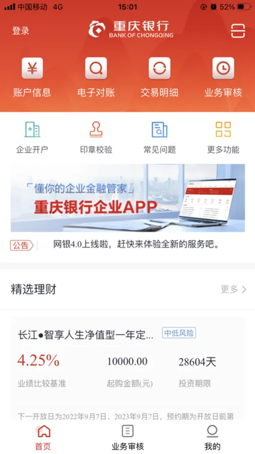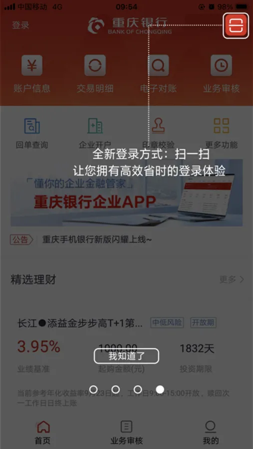 重庆银行企业手机APP,为您提供账户查询、在线审核、电子对账等服务,满足您随时随地移动办公的需求。