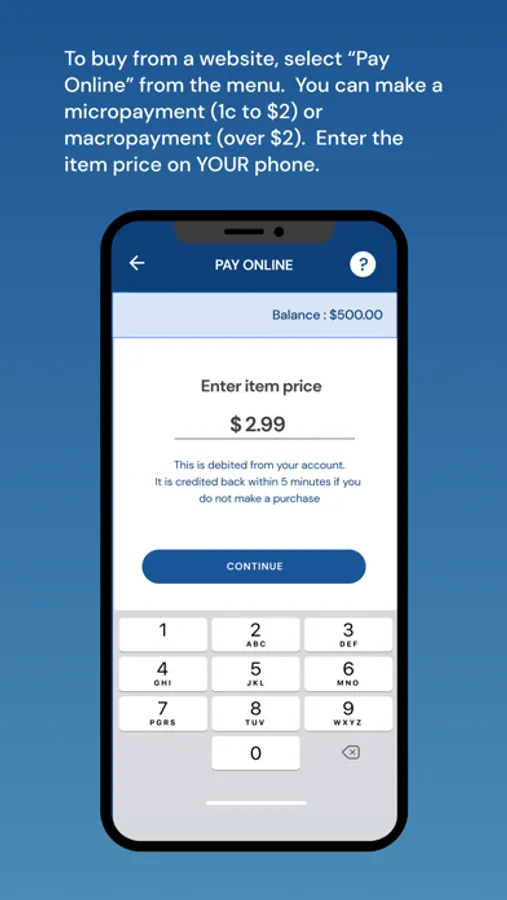 To get started, download the app, sign up, and then load it with funds from your bank account or debit card. You now have a cash account on your mobile device and you are all set. Pay any amount, anywhere, anytime -- “One payment app to rule them all”.