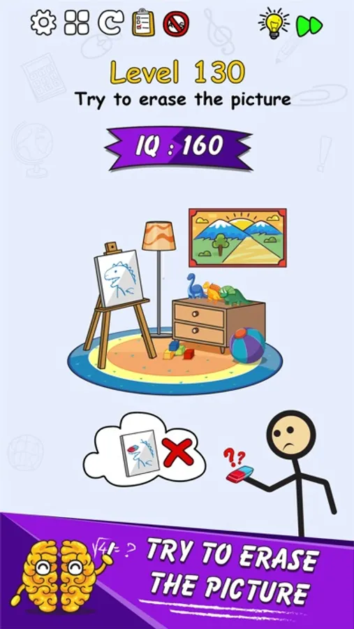 It's addictive with a series of brain teasers and IQ challenges. Think outside of the box to pass all the brain quest and become the person with the highest IQ.