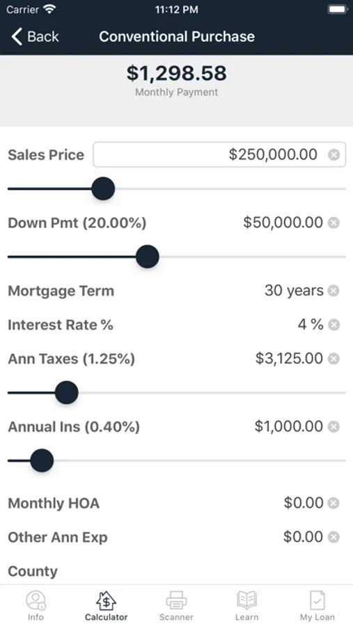 +Calculate scenarios based on down payment amount, interest rate, and other variables