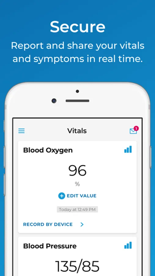 The app uses Apple Health and Direct Bluetooth Connection to retrieve vital signs.