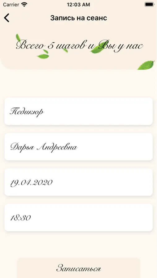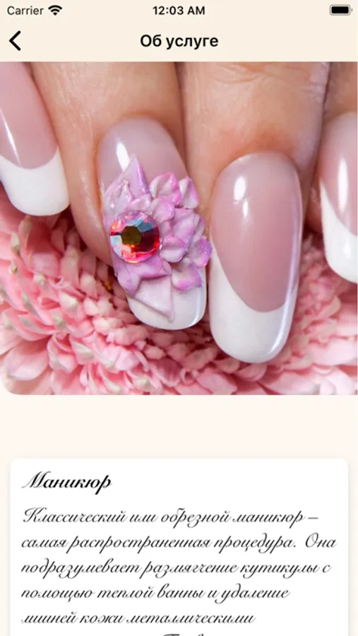 Окунитесь в красивое, понятное мобильное приложение, написанное для салона красоты, в приложении есть не только запись на услуги, но и информация об услугах, информация о персонале, график работы, краткая информация о салоне.