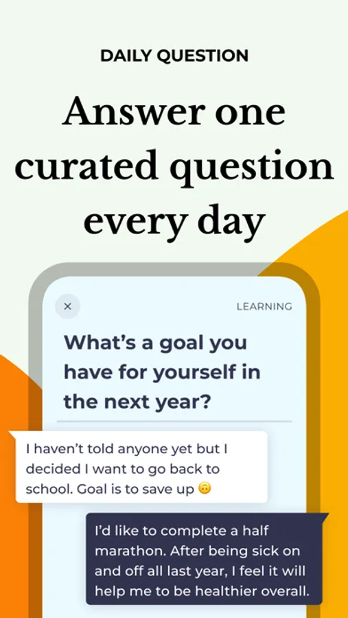 Our questions will be personalized to your relationships. So you would get a different question with your mom than you would a friend or partner. Additionally, you’re only able to see each other’s response, once you have both responded.