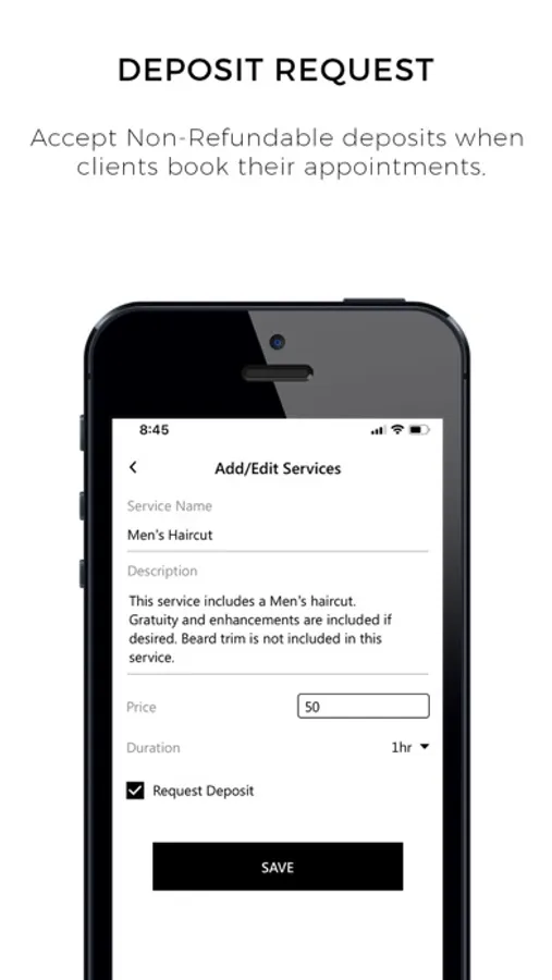 - Require non-refundable deposits during booking to protect their business from cancellations and client no-shows