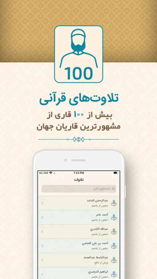 - تلاوتهای قرآنی بیش از 100 قاری از مشهورترین قاریان جهان.
