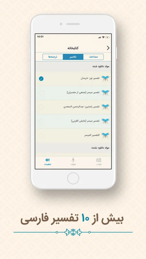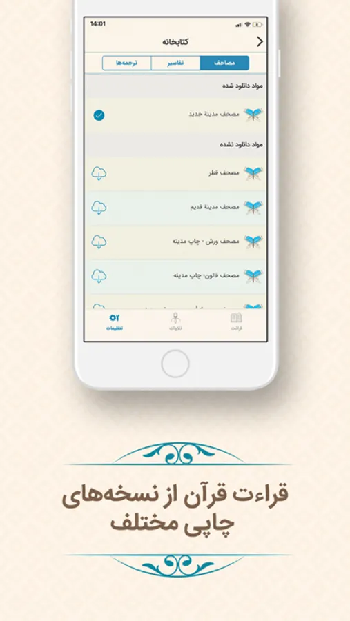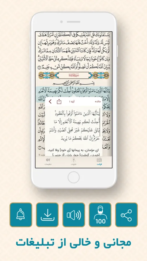 - قابلیت دانلود تلاوات و گوشدادن به آنها بدون نیاز به اینترنت.