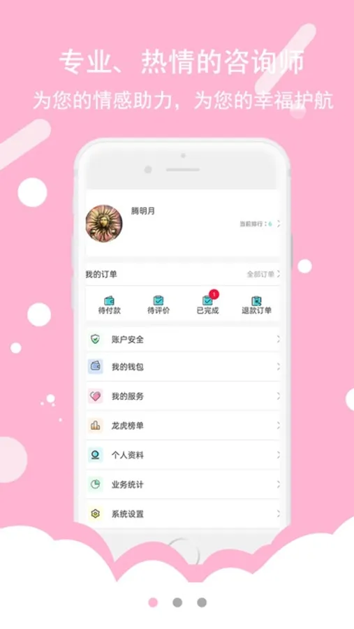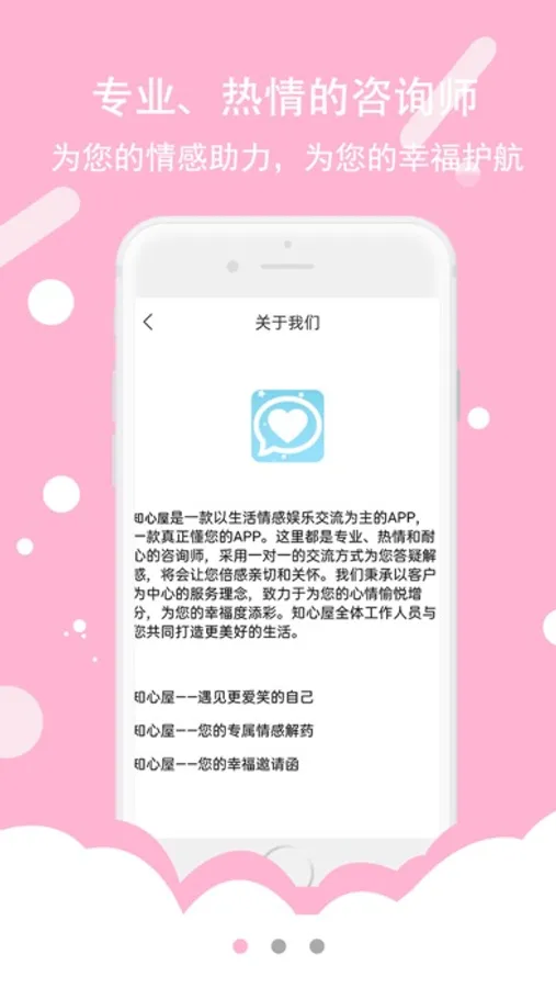 解读师是知心屋咨询师所使用的APP,由AM Culture Information Consulting Co.,Ltd.管理,咨询师使用这个平台在线为客户解答情感、人际、情绪问题。陪伴客户走过情绪不好的时光,让客户得到心情上的舒缓。