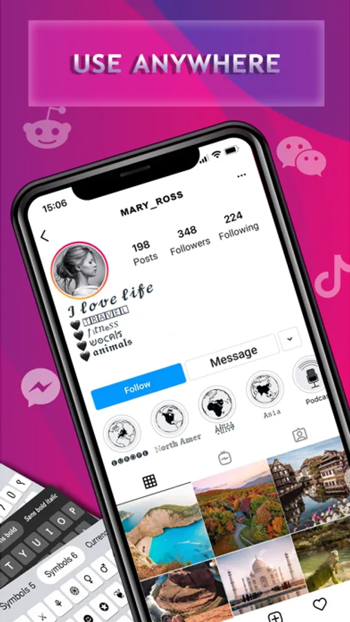 Make your Instagram, Snapchat and Tik Tok profiles, stories and posts stand out with custom amazing fonts and emojis.