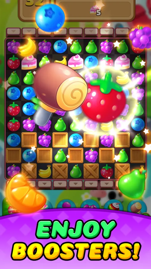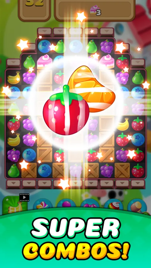 Get ready to level up with bonus moves, striped fruits and fruit bombs.