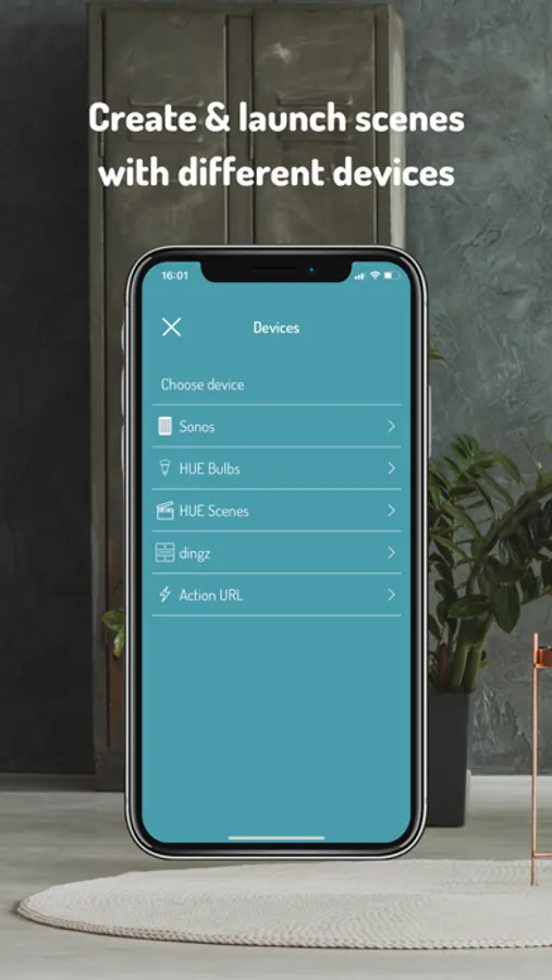 - Create and launch combined scenes with HUE, Sonos and other compatible devices.