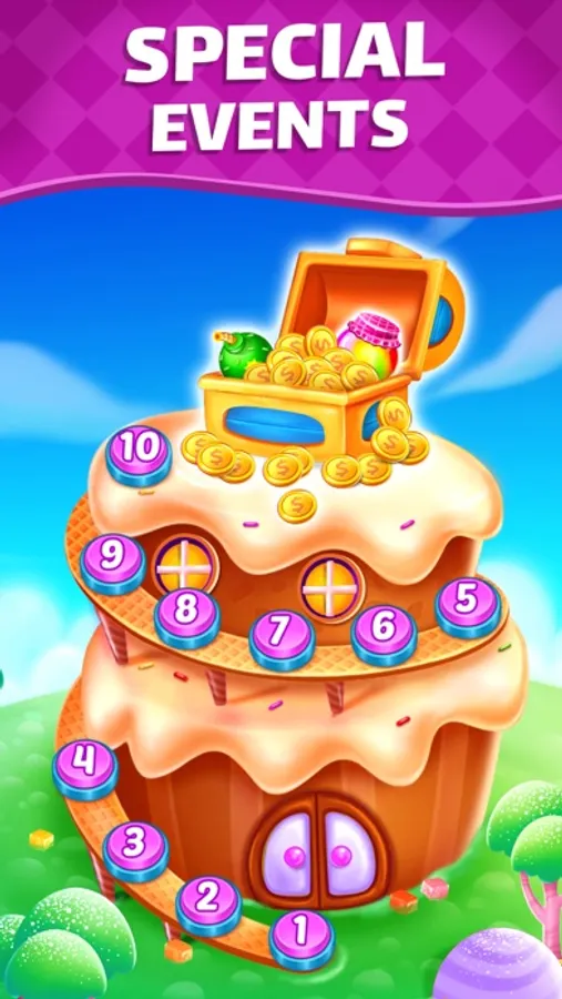 • Swap, match, pop, and blast desserts in a colorful and fun world