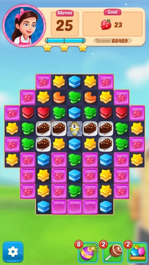 Cake Blast - Match 3 Puzzle Game takes place in a wonderful world of colorful sweets. Chef Rose needs to make special cake flavors by matching many different desserts. She'll need your help to solve each puzzle by crushing, popping, and matching sweets in this fun and free adventure. All you need to do is swap desserts to create matches of three or more pieces, then keep playing until you clear the whole screen!