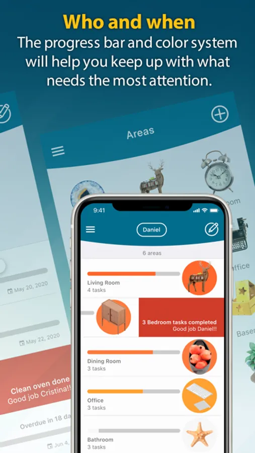 · Share and track tasks with others, check them when complete and it will be sent to the other user next time.