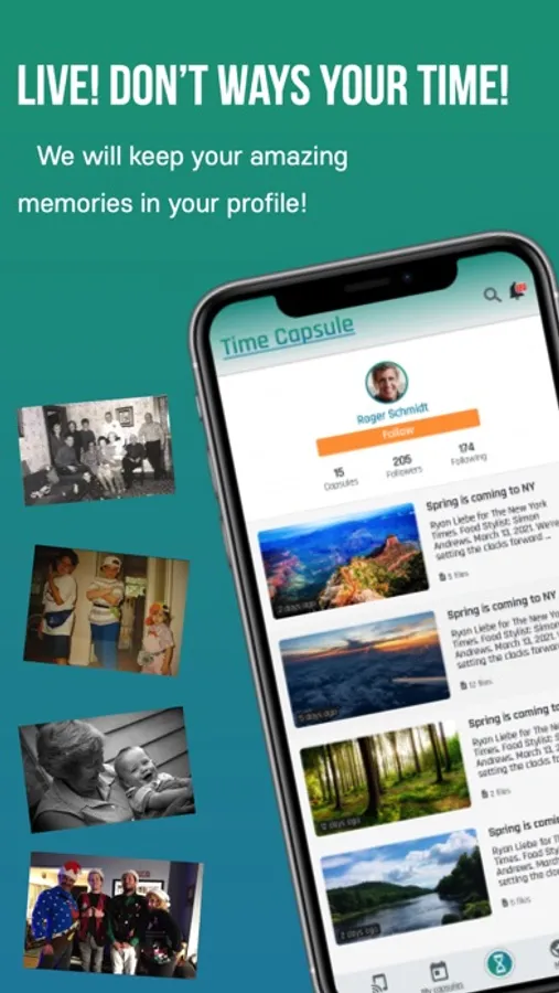 TIME CAPSULE is a mobile application for creating and storing reminders from photos and videos, for individuals, companies and organizations. It's like digital time capsules! A simple way to bring the important moments of our digital ‘self’ back to life, simple way to experience our emotions again and enjoy our memories even more.
