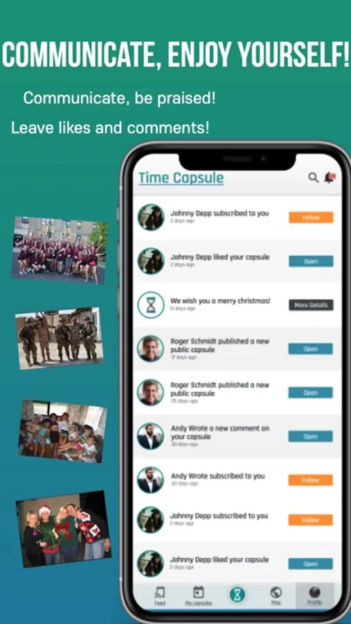 Share your unique experiences and your amazing memories with your close ones and the entire world. Communicate, enjoy yourself. Communicate, be praised. Follow your friends and participate in their life. Relieve their memories and share your own, be it tears at somebody’s wedding, first cry of a child, crazy rock concert drive or sizzling energy of sporting events. Live it again, feel it again because you are unique!
