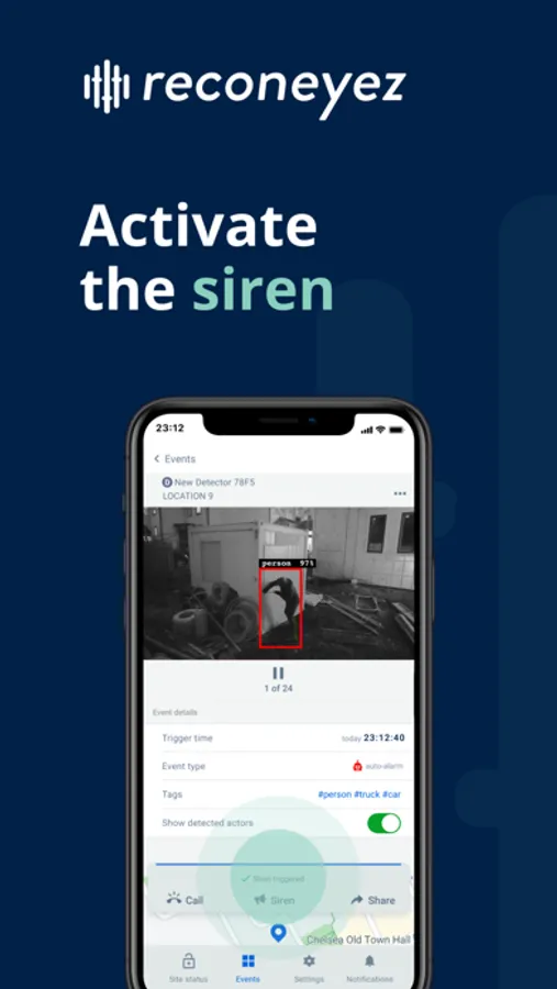 If a notification appears, you will see an alarm photo with the site's location and relevant phone numbers. That lets you take immediate action by driving to the site or calling the authorities. If there's no apparent threat, you can instead choose to activate the siren to scare the unexpected visitor away.