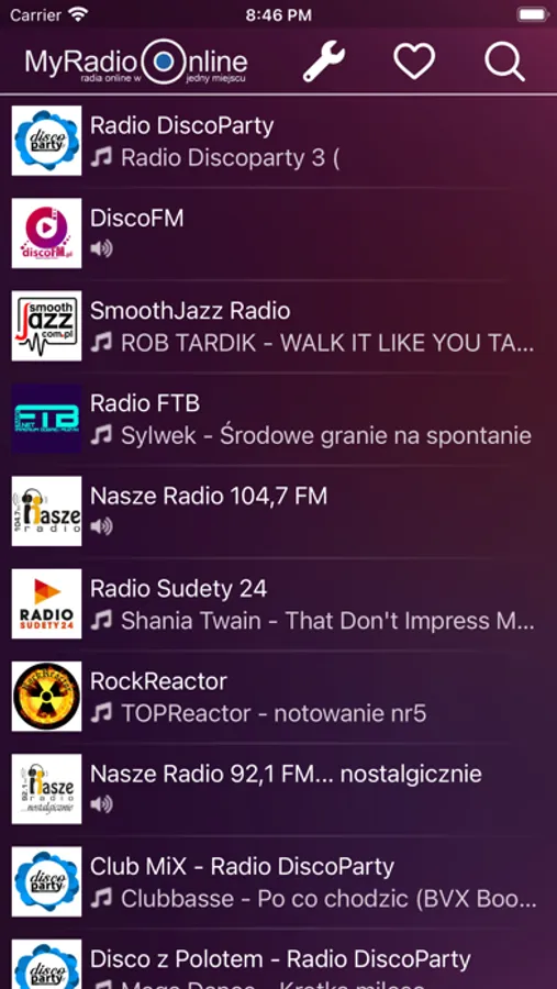 Poniżej znajdziesz niewyczerpującą listę dostępnych u nas stacji radiowych. Jeśli nie znajdujesz twojego ulubionego radia, warto kliknąć w znajdującą się w nagłówku aplikacji ikonkę wyszukiwarki, wpisać nazwę, i tak poszukać dane radio. Wyszukiwarka wspomaga również wyszukiwanie głosowe, w przypadku jeśli nie mógłbyś wpisać nazwy.