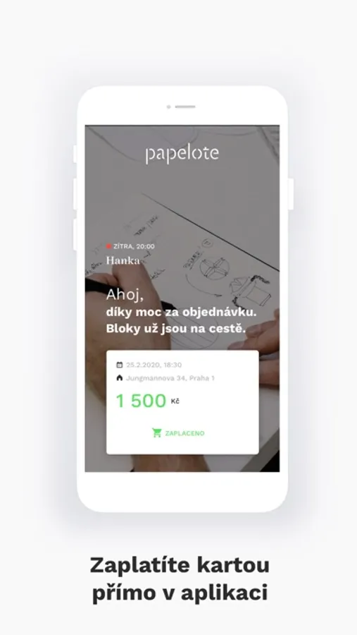 Platíte kartou přímo přes aplikaci. Žádná dobírka nebo hotovost. Jeden klik a nová papírová radost míří k vám.