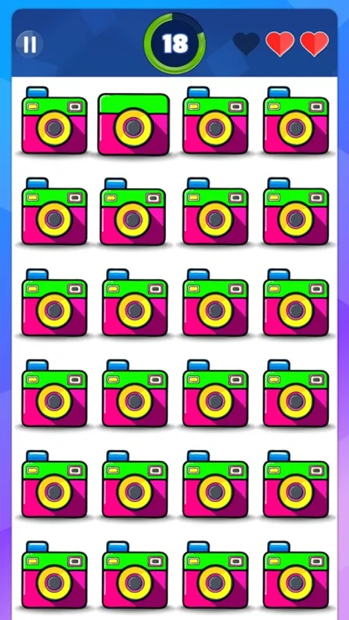 Find The Difference is a challenging, unique, and fun puzzle game. emember this is a brand new variation to find the differences types of game. The fun part of the game is you don't have to find differences, you simply have to find the odd one out image. Spot the maximum number of differences within limited time in this addictive brain workout puzzle. Spot the differences quickly to earn free rewards. This is an addictive puzzle game you'll love!