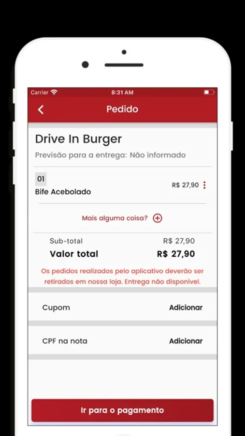 - pagamento na maquininha.