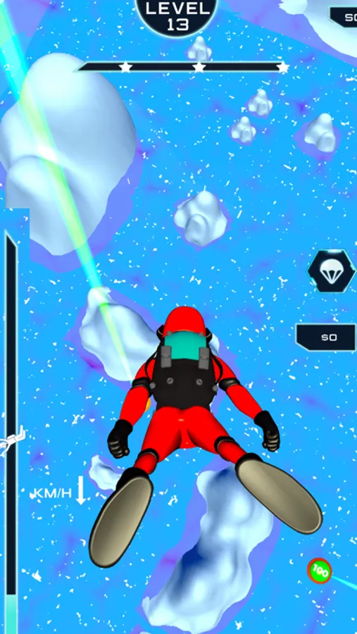 Pass through the circles and land to the best landing pad to score all the points, collect money to buy new suits and skins!