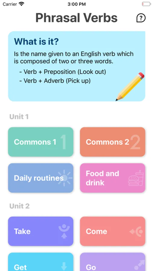 This application is an offline tool to study, practice and learn phrasal verbs in an easy way.