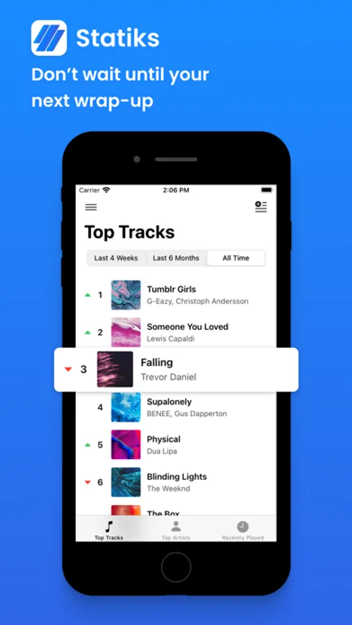 Statistics for Spotify Music provides you detailed insights into your most listened tracks and artists over certain periods at any time of the year. Finally, you can know what you love listening to the most!