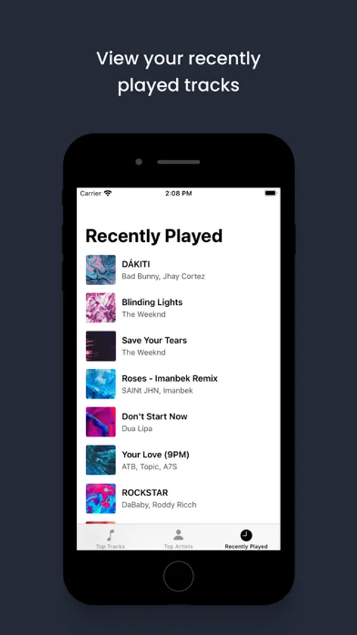 Besides most listened songs and artists, our music stats app for Spotify also allows you to view tracks you have played recently in case you skipped a track accidentally.