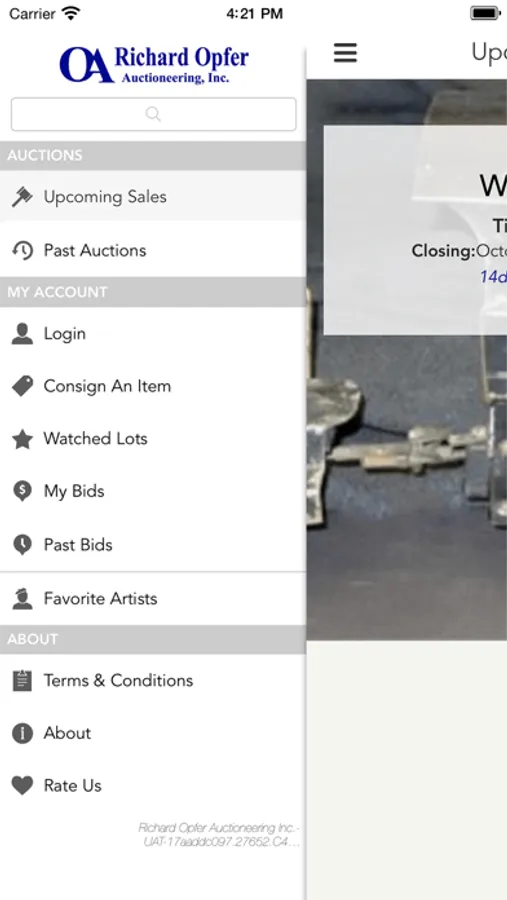 Richard Opfer Auctioneering, Inc., located in Timonium, MD is a full-service auction company, having quarterly fine art and antique auctions, high end collectible auctions and general auctions which feature individual consignments, estate items and more. With the Opfer Auction Online app, you can preview, watch and bid in our auctions from your mobile / tablet device. Participate in our sales while on-the-go and gain access to the following features: •Quick Registration •Following upcoming lots of interest •Push notifications to ensure you engage on items of interest •Track bidding history and activity •Watch live auctions