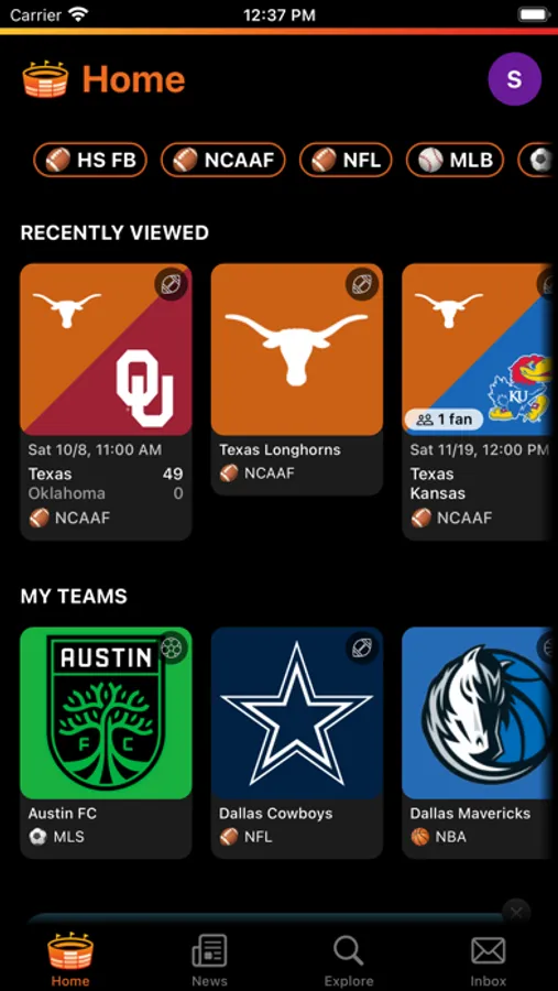 The app currently features NCAA Football, NCAA Men's Basketball, NFL, NBA, MLB, NHL, and MLS – and more sports are on the way!