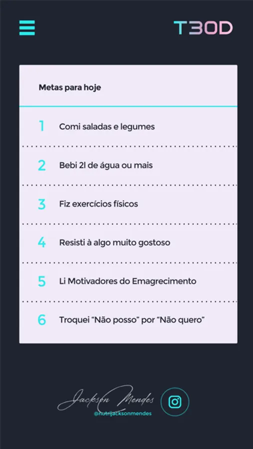 Aplicativo de acompanhamento e nutrição do nutricionista Jackson Mendes.