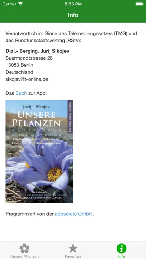 UnserePflanzen ist die App zum Wörterbuch „Unsere Pflanzen“ des Fachdolmetschers und Übersetzers Dipl. Ing. Jurij Sikojev.