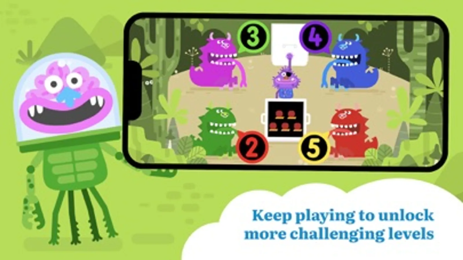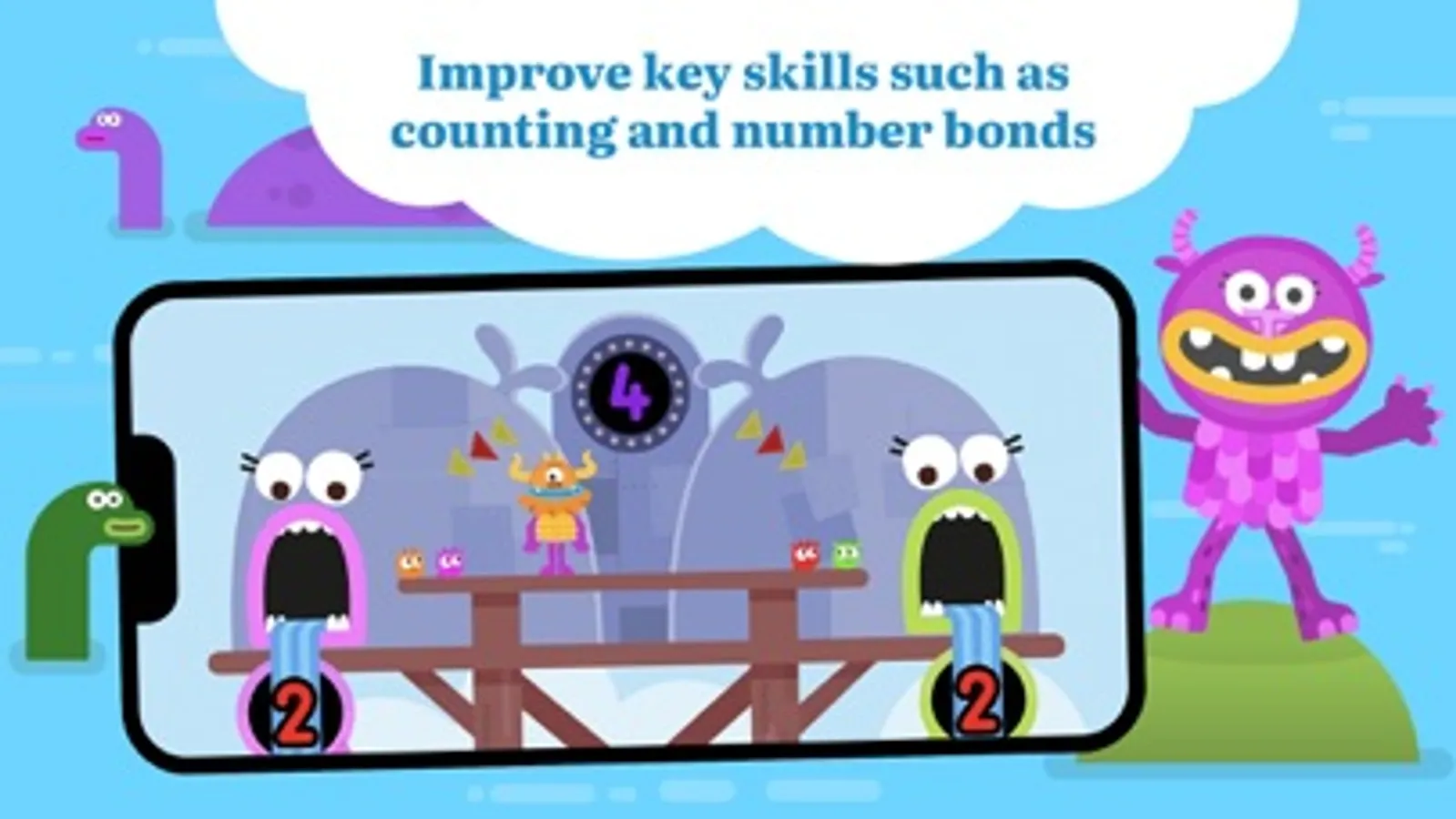 Teach Your Monster Number Skills is a kids learning game developed with renowned early years mathematics expert Bernie Westacott in consultation with Dr Helen J. Williams, and Dr Sue Gifford, to help children practice the skills needed to develop their number sense.