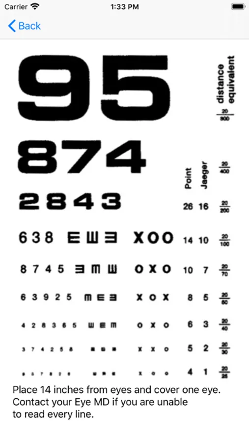 This test will tell the user the degree of severity of vision loss, if any. This allows eye MDs and other MDs to communicate with the patient "virtually." We offer this test free to our patients now.