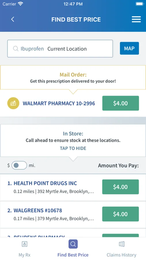 • Select 'favorite' pharmacies that will always appear at the top of searches