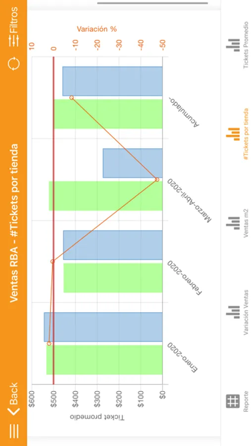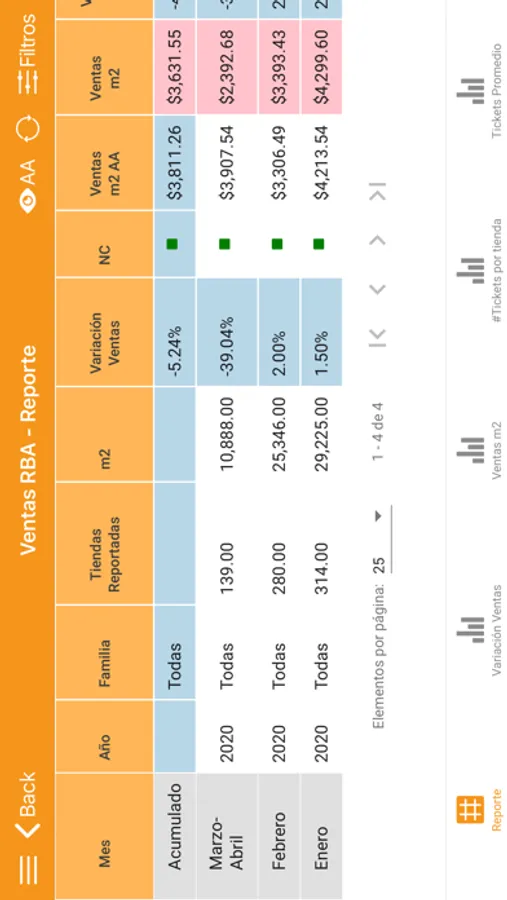 En esta versión es posible ver los siguientes reportes análogos a sus secciones homónimas en la aplicación web: