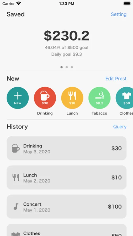 When you cancelled something costs, record the price as saved money.