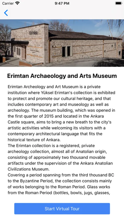 Virtual Museum is a mobile application designed for exploring Turkey's valuable museums. It has gathered dozens of different museums on the same platform and aims to bring its users together with collections in history, culture, art, science and other fields with the technological opportunities provided by today's technology.
