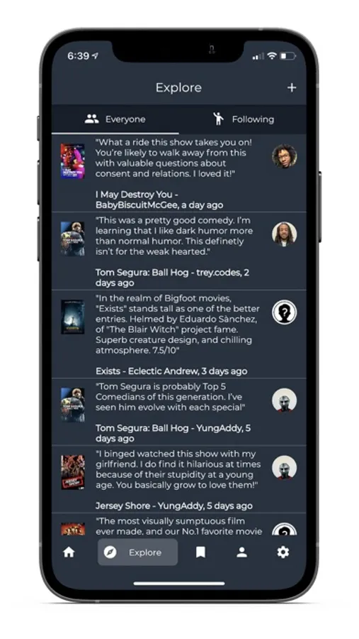See what your friends are watching and what they think about it. Save yourself the time of searching for new shows and movies by knowing whats hot in the streets.