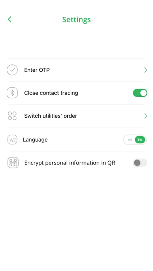 Check-in places: Citizens can view details about the places they have been to and performed QR code scanning when entering/leaving. The details include names of the places and relevant times (detailed time of each QR code scan).