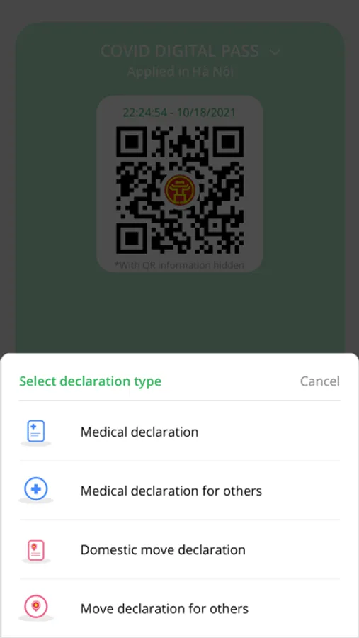 Personal QR code: Each citizen is granted a unique personal QR code that enables the display of information related to COVID-19 prevention and control following national pandemic prevention and control strategy.
