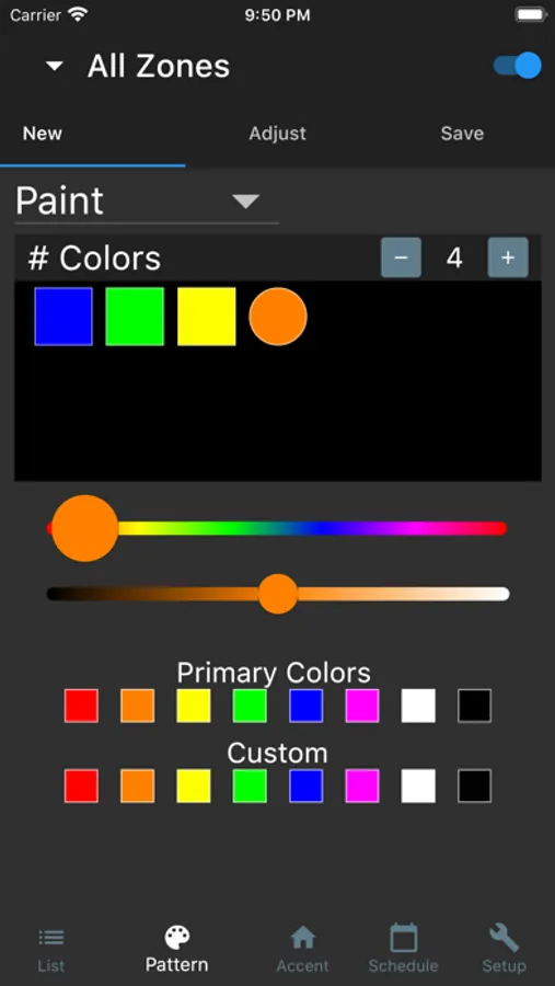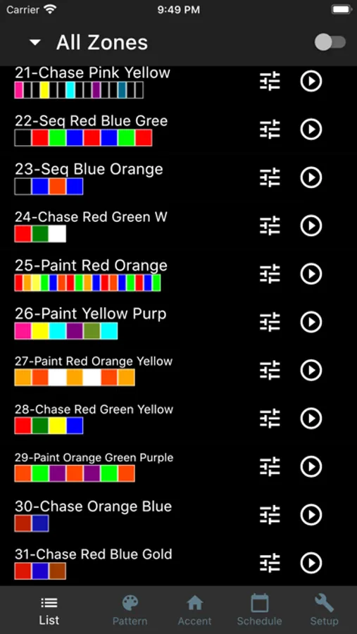 Create your own programs with sequences such as Chase, Paint, Color, Stacker, and Mutli Paint.
