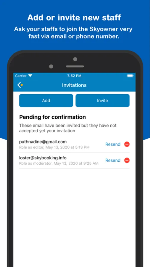 Skyowner creator will be an administrator of whole system which be able to add or invite his/her staffs to join in this Skyowner channel. Furthermore, not just adding or inviting but Admin will be able to remove or block staff’s username as well.