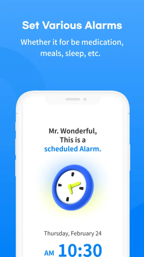 - Set alarms for medication, sleep, meals, etc.
