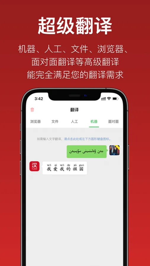 国家通用语言文字学习助手-简称国语助手;这是一款非常便捷实用的翻译软件,界面简洁明了,支持维语-汉语-英语-哈语互译,不仅可以语音识别翻译,还带有拍照识别翻译功能。支持面对面翻译, 内含海量词汇数据库,比如教育、旅游、办公、法律知识等等。让您沟通无障碍。