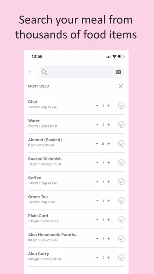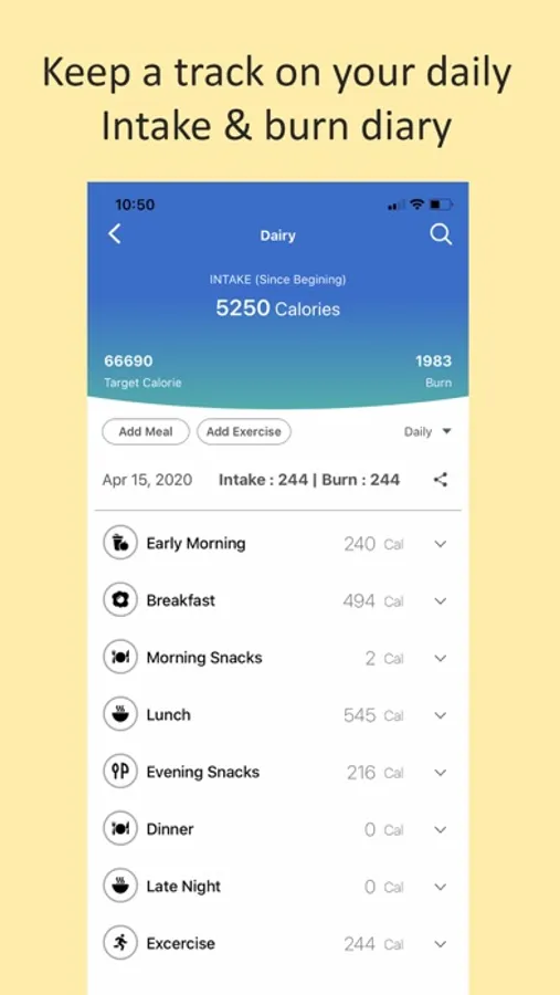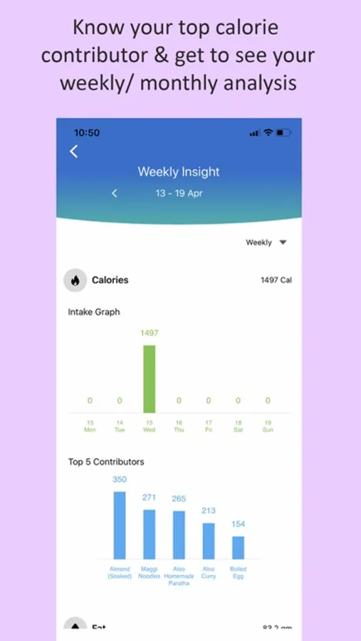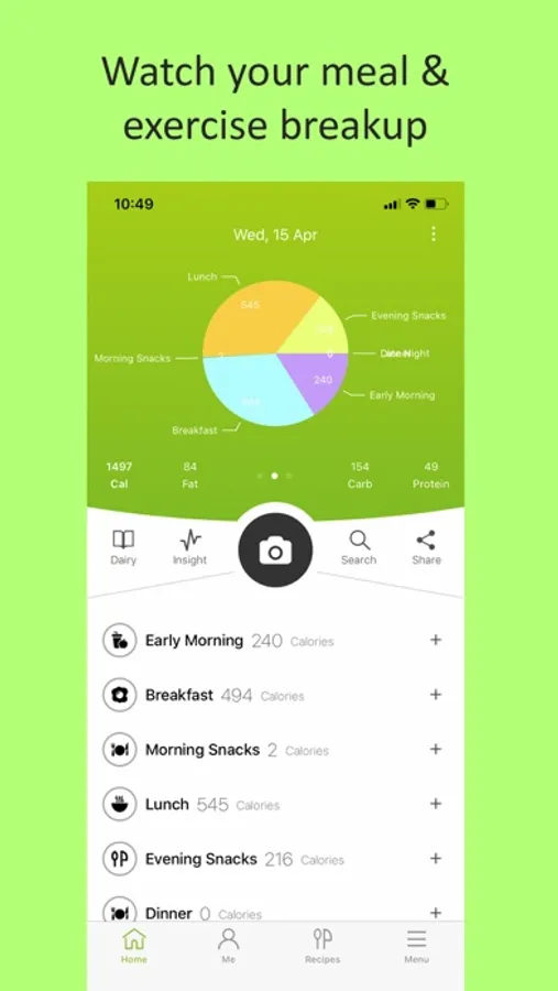 • Analyse your calorie difference between various meals like breakfast, snacks, lunch or dinner