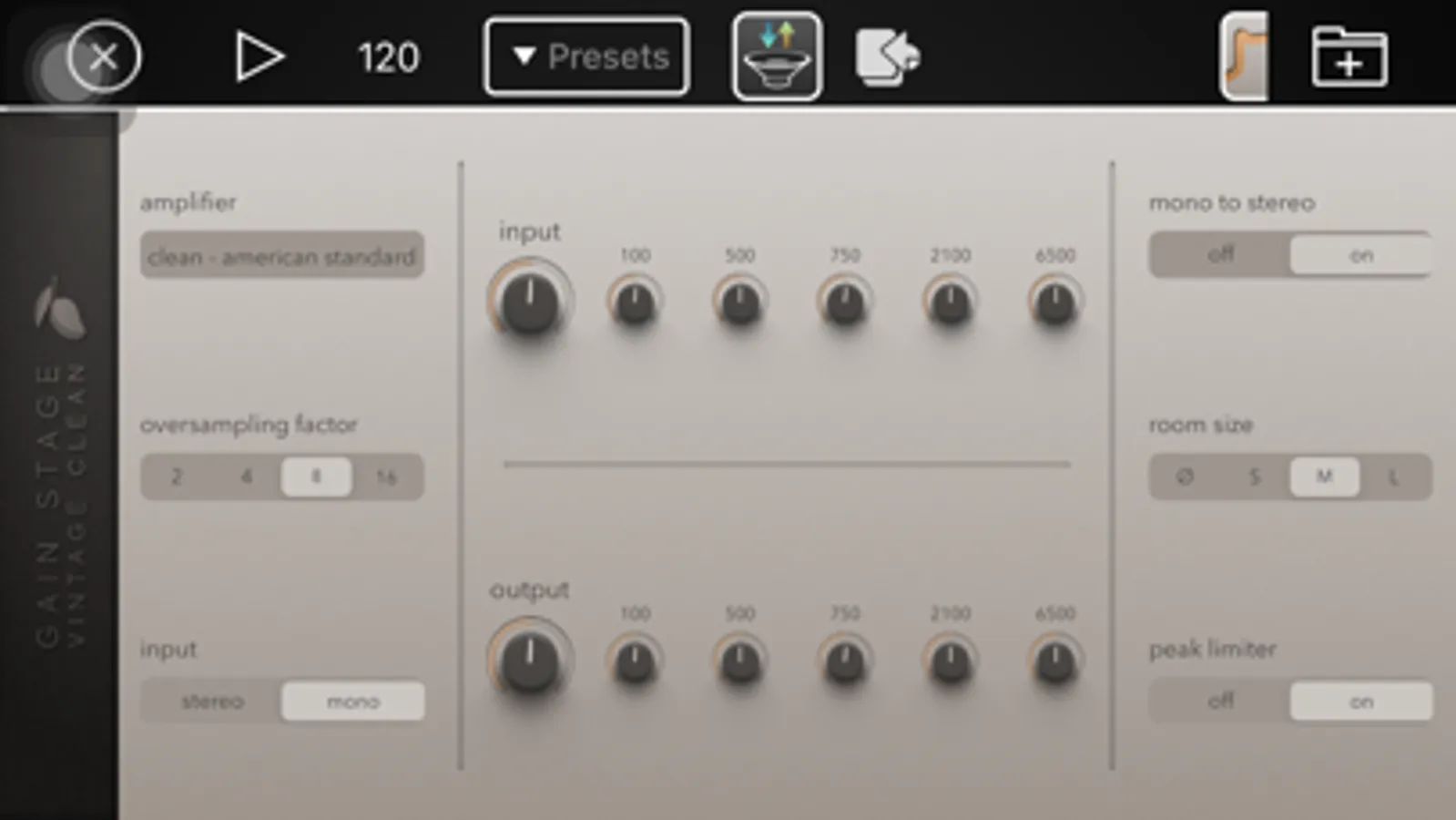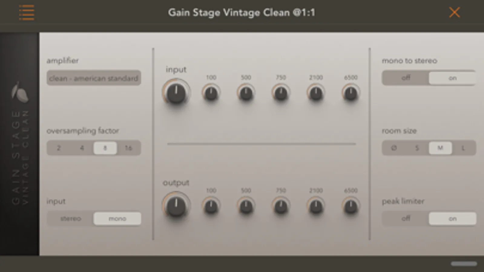 NOTE: GAIN STAGE VINTAGE CLEAN IS AN AUDIO UNIT PLUGIN. IT RUNS INSIDE A HOST APP SUCH AS GarageBand OR AUM. IT DOES NOT RUN AS A STANDALONE APP.