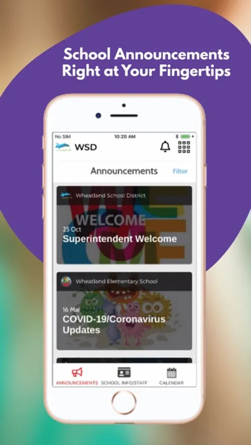 The app includes information for the district and all schools. Filter by the school your child attends to feature information for that school.