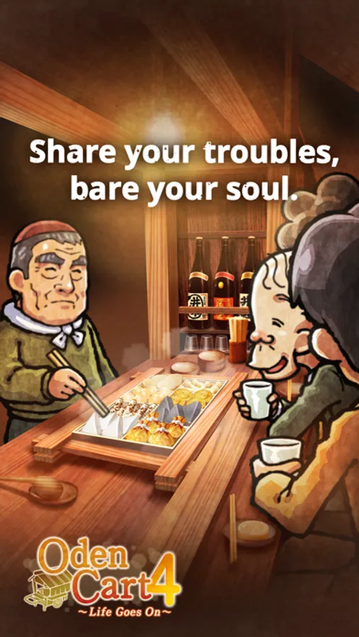 In Oden Cart 4: ~Life Goes On~, take on the role of the oden cart owner and serve delicious bowls of oden to your customers! As they dig in, they'll strike up a conversation, share their troubles, and give you a glimpse of the joys and sorrows that delight and plague them.
