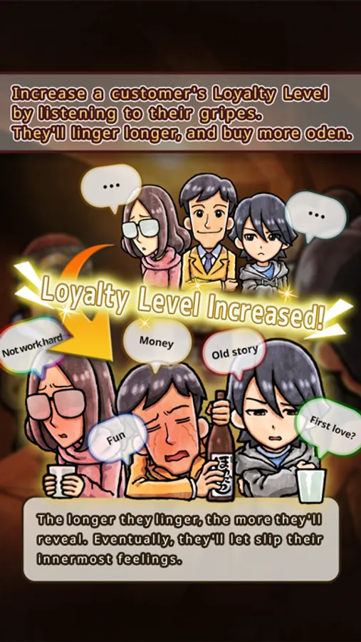 This means they'll hang around longer and eat more oden! You might end up listening to them gripe about the same thing a few times, but patience is a virtue, and virtues are always rewarded in the end. The more you get to know your customers, the more likely they'll be to tell you more about themselves...and maybe even tell you what they really think!
